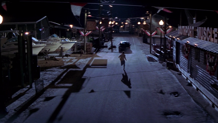 The car turns down the alley, which is I Am Street, right by the water...