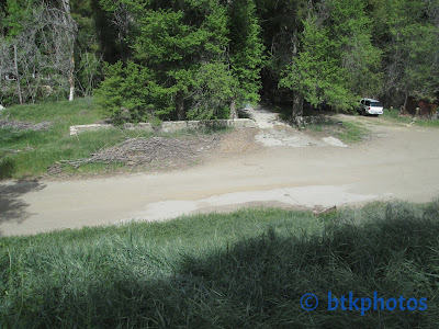 The house seen in the background is 15313 Spunky Canyon, which is just before the convenience store Shelly and Vera visit later on. It was a little difficult lining up this shot with the giant tree behind the house almost covering the mountains in the distance.